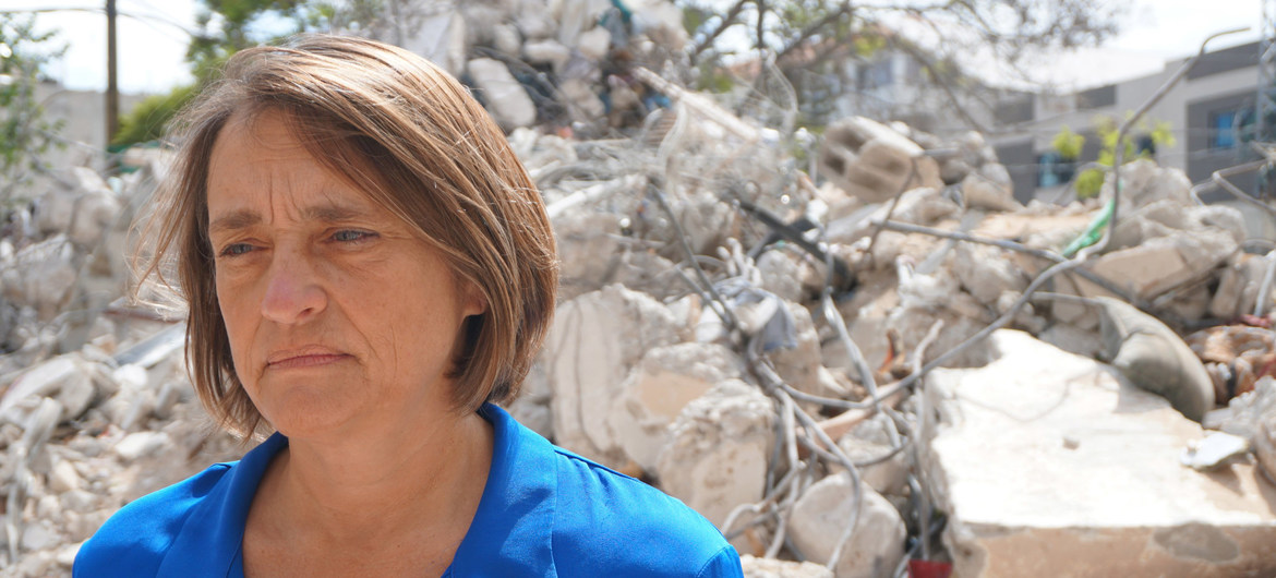 UN OCHA OPT Lynn Hastings, coordinadora humanitaria en el territorio palestino ocupado, visitó Gaza tras los bombardeos israelíes.