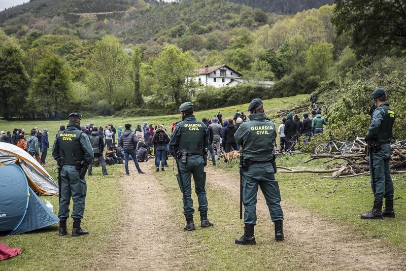 El primer día, la Policía Foral de Navarra identificó a las activistas y las grabó. Los siguientes, han recibido la visita de la Guardia Civil. La presencia policial en el pueblo y en los municipios colindantes es constante, donde también realizan identificaciones.