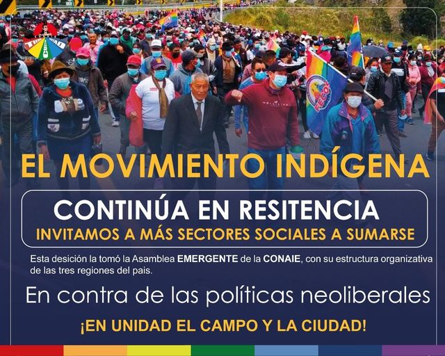 «Exigir al Gobierno nacional la libertad inmediata de todos los compañeros detenidos de manera arbitraria, injusta y violenta», fue la primera de las condiciones del pliego acordado en la Conaie.