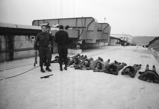 Paliza al amanecer. Tras cortar los cables, los ocho solidarios se deshacen de las capuchas y gafas y se disponen en hilera en el alto del contrafuerte de cemento. Esperan a cara descubierta en un lugar visible. A sus pies, las sierras todavía en marcha pero en punto muerto.