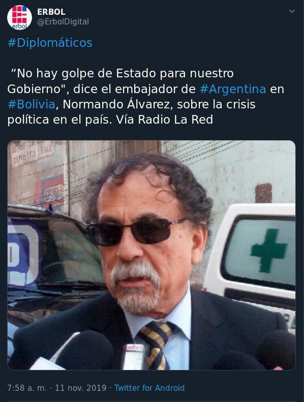 Se estableció una aceptación acrítica de las opiniones de la OEA sobre las elecciones a pesar de la falta de pruebas que las respalden, tal es el caso de BBC (11/10/19) y Voice of America (11/10/19) en la cobertura de las elecciones. Ningún medio de comunicación advirtió a sus lectores que la OEA es una organización creada explícitamente para atacar a los gobiernos progresistas.