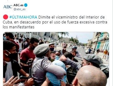 El diario ABC difundía la noticia de la dimisión del viceministro del Interior de Cuba, en desacuerdo por el uso de fuerza excesiva contra los manifestantes. Algo que se desmintió, pero la noticia sigue colgada en su web. ¿Rectificaciones? Ni están ni se las espera.