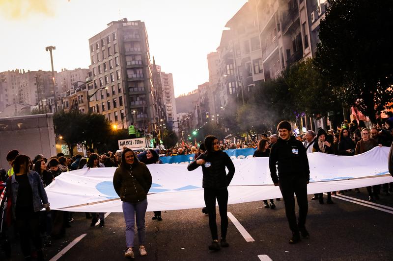 Cuando la movilización de Baiona ha finalizado le ha cogido el testigo la de Bilbo, pasadas las 17.15, desde La Casilla. Cuando la cabecera llegaba al final, en el Ayuntamiento, la cola estaba en la calle Autonomía, en el cruce con Iparragirre.