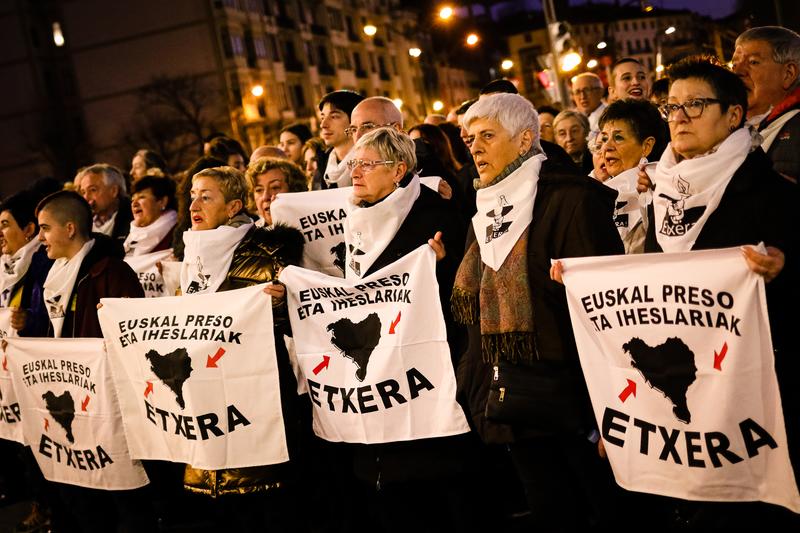 Para demasiadas personas, la manifestación que cada año se celebra en Bilbao después de Navidades para reivindicar el fin de la dispersión y de las medidas excepcionales permanentes con los presos vascos equivale a apoyar a ETA, una organización que ya ni existe. Pero en las calles de Bilbao se juntan, erre que erre, año tras año, no menos de 70.000 personas, respaldadas por diversos partidos políticos, todos los sindicatos, incluidos CCOO y UGT, y representantes de la sociedad civil. Y la edición de ayer fue especialmente simbólica: dos víctimas de terrorismo, Rosa Rodero, viuda del ertzaintza Joseba Goikoetxea, asesinado por ETA, y Axun Lasa, hermana de José Antonio Lasa, asesinado por el GAL, portaron la pancarta de la manifestación y fueron las encargadas de leer el discurso final en la explanada del Ayuntamiento.